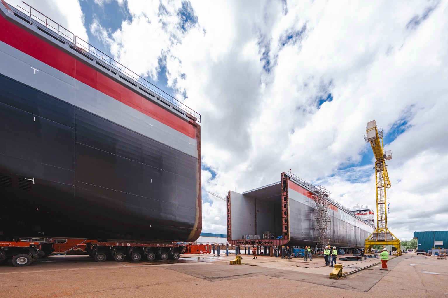 De engineering is vergevorderd en de eerste formele bouwstap, de kiellegging, markeert de start van de serie. “We bouwen in ringen, sectie voor sectie”, vertelt Van der Linde. “Een enkel schip opleveren kost ruwweg negen tot twaalf maanden; in serie zie je het tempo oplopen.” De order betekent veel voor de regio. “We zijn de grootste rederij van Nederland en een belangrijke werkgever in Noord-Nederland”, zegt Van der Linde. “Mooi dat we dit met zoveel Groningse en noordelijke subcontractors kunnen doen. Je voelt de trots bij iedereen die eraan meewerkt. Het is niet zomaar staal dat hier wordt verwerkt, het is vakwerk dat letterlijk de wereld over gaat.”